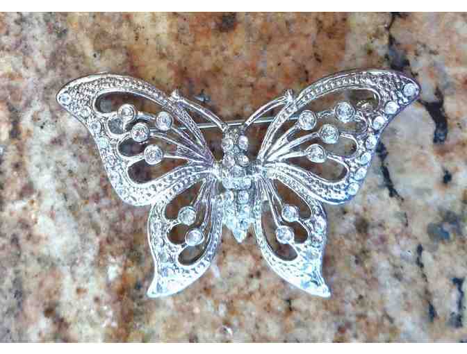 Silver & Rhinestone Butterfly Pin -- Pre-Owned