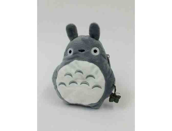 Fans of Totoro will love this plush zippered Totoro pouch with a clip to attach to the zipper pull of a backpack or other item. Measures approximately 5" tall.