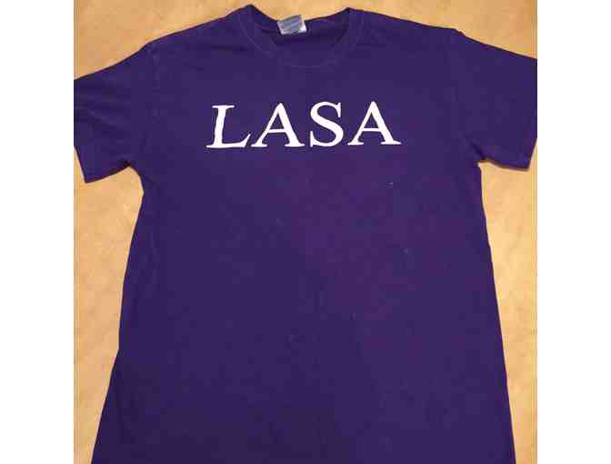 Enjoy wearing your LASA t-shirt to show school spirit! This is a gently used Small t-shirt. There are slight color variations almost imperceptible.