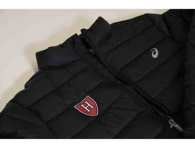 Looking for official Harvard Athletics gear to wear this winter? This Asics brand down jacket featuring an embroidered Harvard Athletics "H" shield will keep you warm this winter whether you're headed to Harvard-Yale or hockey games at Bright.