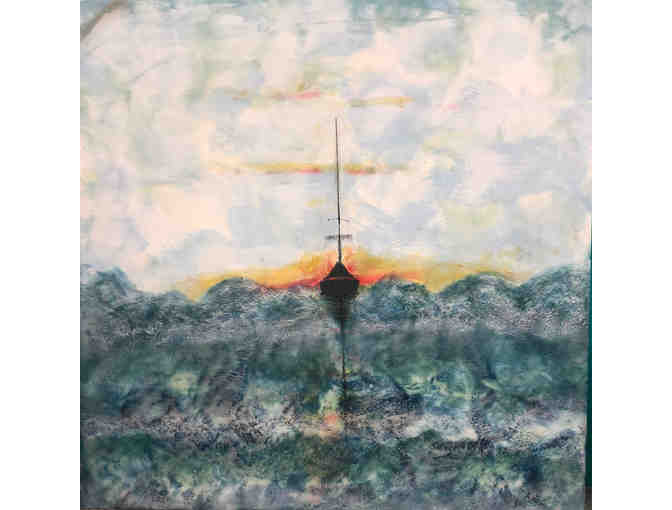 You'll be bidding on a beautiful encaustic on board painting by Marcy Bergeron Noa, titled, "If I Had a Boat # 2". This painting, rich in color and texture, is 16X16, unframed.