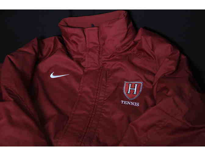 Stay warm this winter with this crimson colored Nike sideline jacket featuring the Harvard Tennis logo.