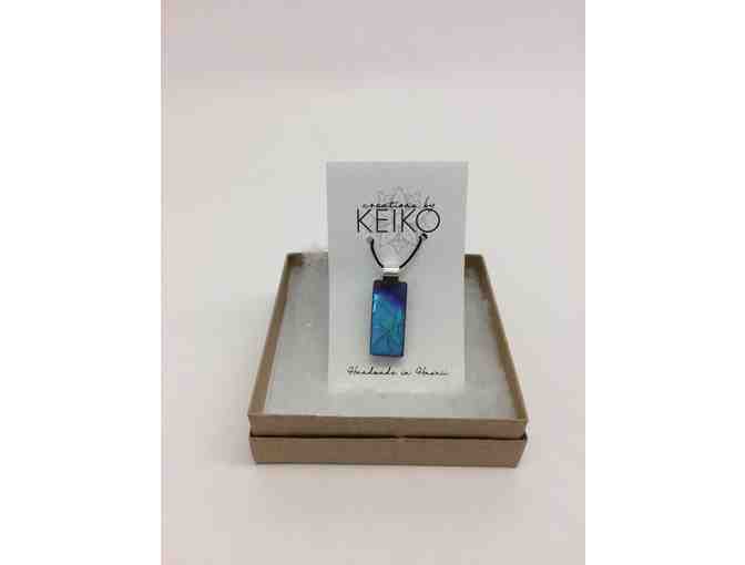 This dichroic fused glass pendant is hand crafted with aloha by Creations by Keiko. It will catch everyone's eye with it's magical magnet of color. Every piece is unique - you will get the actual piece you see in the listed photograph. Cord not included. Approximate size of pendant is 1" x 1/2".