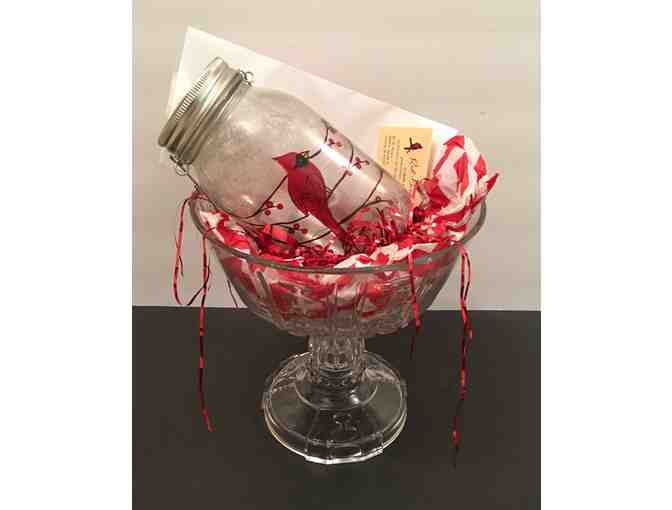 Anyone who has driven down the Kellerville blacktop south of Illinois Route 24 knows the place. The magnificent farm house is dressed in sprays of blossoms and country charm with a rainbow of breathtaking flower beds adorning the landscape. This package includes a one night stay at Red Bird Inn, an antique centerpiece and beautiful cardinal lantern.