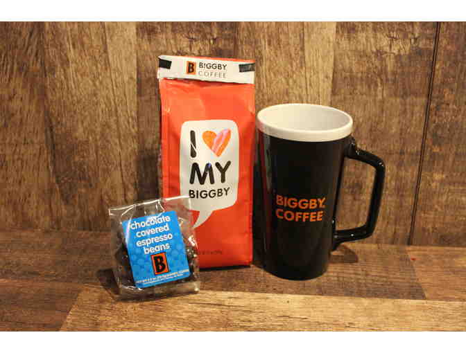 This awesome Biggby basket contains a coffee lovers favorite items! It has Pumpkin Pie Coffee, Coffee mug, Chocolate covered Expresso beans, and coupons for coffee!