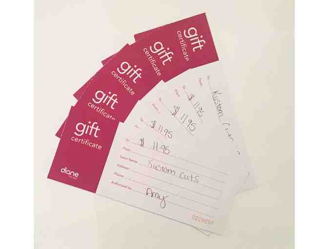 Win this item and you'll receive five haircuts at Kustom Cuts! The salon specializes in haircuts, color, perms, facial waxing, updos and pedicures.