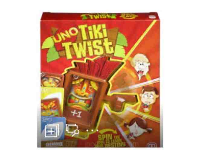 Are you ready for a classic game of UNO with a twist? A mysterious Tiki idol has taken over the game, and all who play must BOW TO HIS WILL! Every time the idol is spun, the course of the game is changed. If He lands on you, He may be generous and let you discard cards from your hand, or He may be mischievous and force you to draw cards from the deck! Either way, the sixteen unique Tiki Action cards – as well as random regular UNO cards containing a “spin” icon – add unpredictability and suspense to every round. As always, be the first player to get rid of all your cards – don’t forget to shout “UNO” when you have only one card remaining! Comes with Tiki Idol spinner, 112 cards, and instructions. For ages 7 years and up.