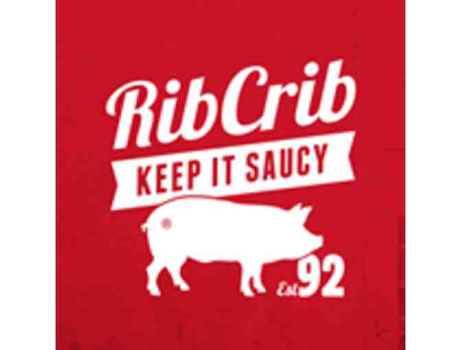 Gift certificate for a Family Value Pack. 1.5 pounds meat of your choice, 2 large sides, 3 Texas Toast, BBQ sauce, pickles, peppers and onions. Come and check out the rib Crib located at 1120 Mathias Dr. Springdale (behind the outlet mall).