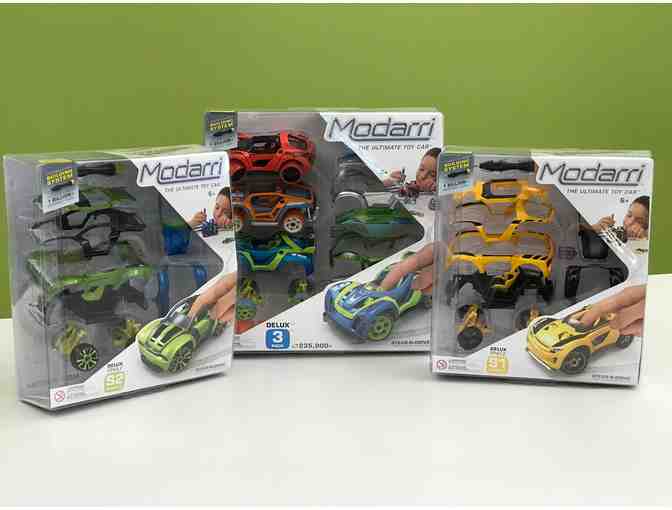 Modarri encourages open-ended play patterns, resulting in a much higher engagement with our toys. With only a few Modarri cars, it’s possible to spend multiple hours just taking cars apart, switching components, and building them in new ways from your imagination. Three cars provide over 235,000 different car combinations to explore.