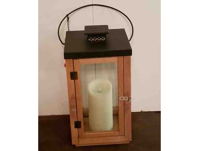 You are bidding on a rustic homey wooden lantern outfitted with a battery operated candle that flickers. Flowers or decorations could be added to have this quaint lantern out all seasons of the year.