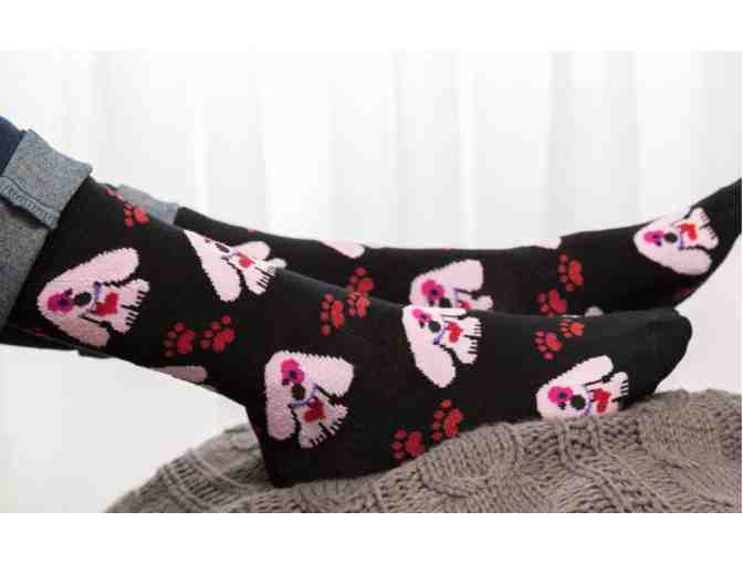 It isn't just love, it's puppy love! Add some love and pep to your step with these dog and heart-themed socks.