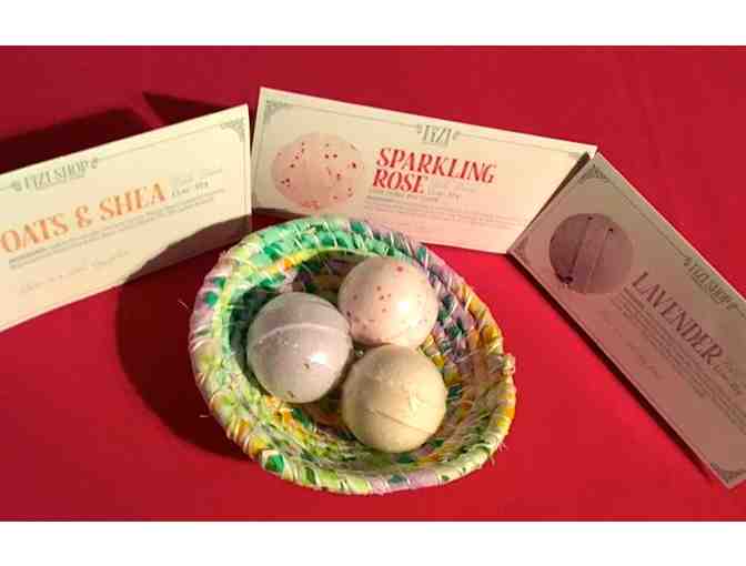Three "old fashioned" Fizis bath bombs in a "recyclabowl." Friday evening "Lavender" helps wash away the stress of a busy week. Saturday evening "Sparkling Rose" gets you ready to sparkle on the town. Sunday "Oats & Shea" softens and rejuvenates skin... so you are ready for a new week. All in a cute refillable recyclabowl hand crafted by Karen Henshaw. Posh Fizis from SKH.po.sh