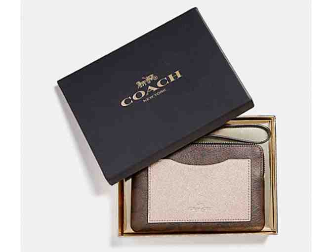 COACH CORNER ZIP WRISTLET W/METALLIC COLORBLOCK - BROWN/PLATINUM- NWT