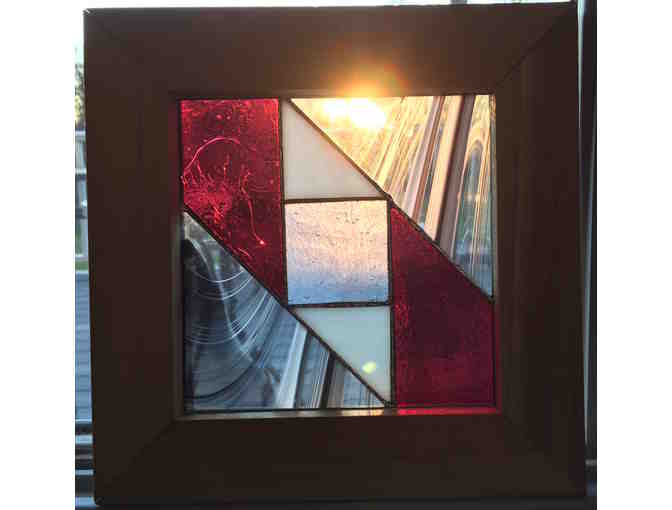Framed Original Stained Glass - Red/Gray Quilt Square