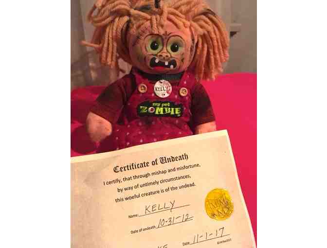 Kelly is a one of a kind, priceless, "Pet Zombie" from the "Monster Guard" collection. She is hand crafted and comes with her own "certificate of Undeath." If you know someone who loves all things Zombie... this is the gift for them! Donated by Ivan Hergert.
