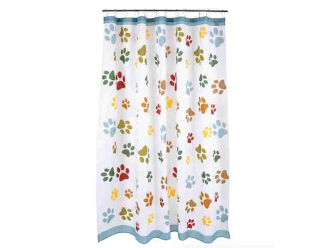 Add some pawsome colors to your bathroom with this delightful shower curtain! A rainbow collection of paws cascades down the curtain, creating both a unique and playful look to your bathtub or shower.