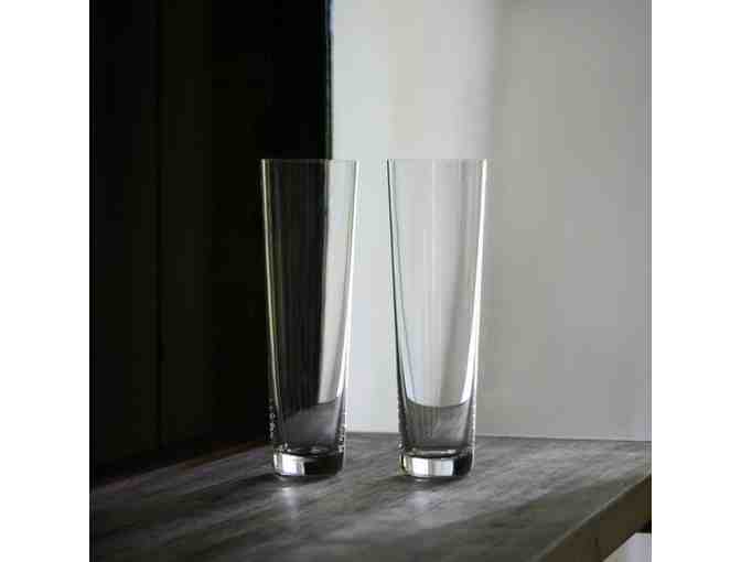 Glassware designer Deborah Ehrlich offers a pair of hand blown Swedish crystal champagne glasses, with a hand polished lip. Paper thin.