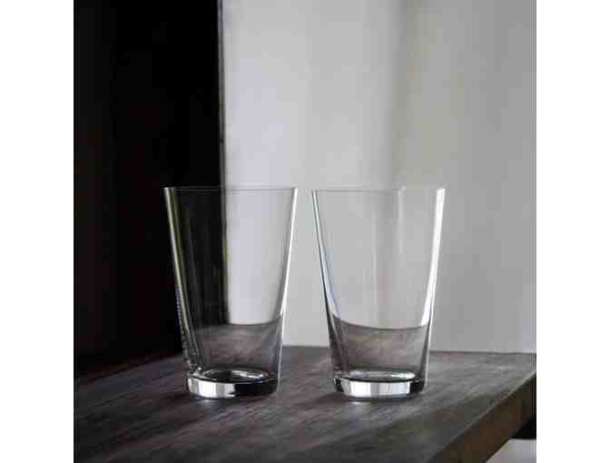 Glassware designer Deborah Ehrlich offers two elegant stemless white wine glasses. Designed in NY's Hudson Valley and hand blown in Sweden, these crystal white wine glasses are 4" tall with a 2.5" lip. Signed on the bottom with a diamond tipped pen.