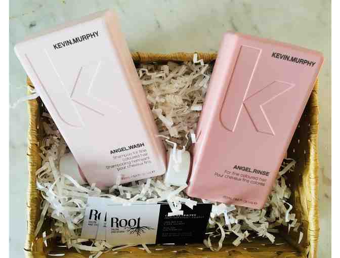 You are bidding on a shampoo and conditioner set by Kevin Murphy donated by Root Salon and Studio. Kevin Murphy's Angel Wash is a delicate recovery shampoo for fine, fragile or broken hair that is colored or damaged. It gently cleanses while maximizing color retention, protecting against free radicals, and inhibiting UVA oxidation which is essential for repair of damaged hair. Kevin Murphy's Angel is a weightless volumizing conditioner. It moisturizes and protects fine, dry and colored hair without weighing it down.