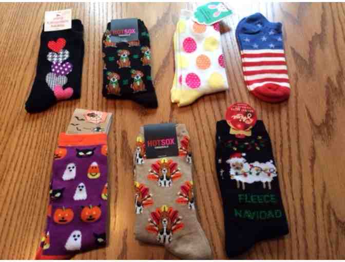 Be prepared to show your holiday spirit though out the year with this cute set of holiday socks. Includes a pair for Valentine’s Day, St Patrick’s Day, Easter, Memorial Day/4th July, Halloween, Thanksgiving and Christmas.
