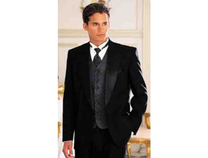 A Black Tuxedo from Schraders Formalwear for this year's prom 2018. You can upgrade to a color for a small fee.