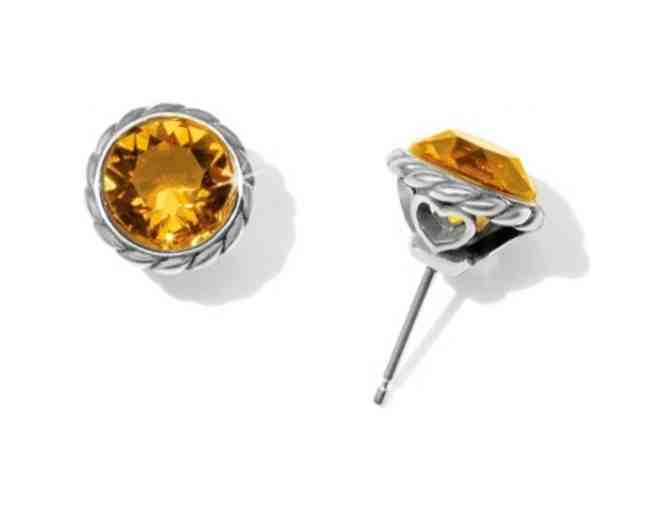 You are bidding on a pair of Brighton Iris Topaz Stud Earrings. Craving a bit of color in your everyday attire? These brilliant stud earrings, in a bold topaz hue, add a splash of radiance!