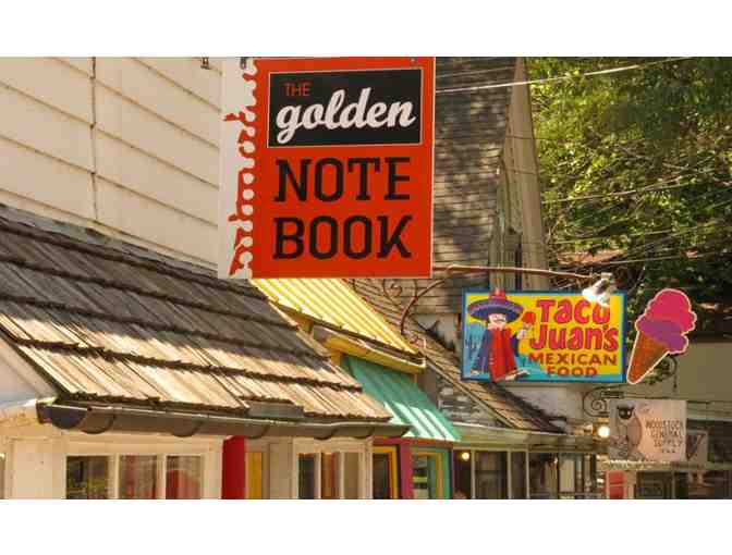 Named after original owner Ellen Shapiro’s favorite Doris Lessing novel, The Golden Notebook opened its doors on June 23, 1978. Shapiro and business partner Barry Samuels leased the storefront that had formerly been Joe Forno’s Colonial Pharmacy. Forno built 29 Tinker in 1947 with lumber from Nelson Shultis’ mill in Wittenberg; under his kindly supervision Colonial became the town’s principal destination for ice cream.
