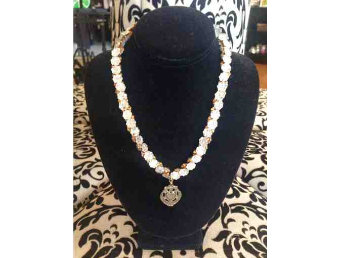 Beautiful, unique handmade necklace from Bittersweet, featuring a sophisticated interplay of the old and new. A layered collage of vintage glass buttons, ethnic pendants, to sterling chains.