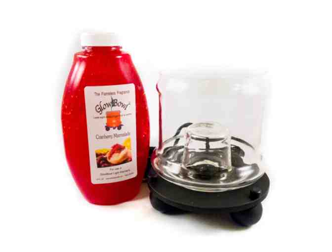 Introducing the Glow Bowl. You are bidding on a glow bowl and bottle of cranberry marmalade fragrance crystals.