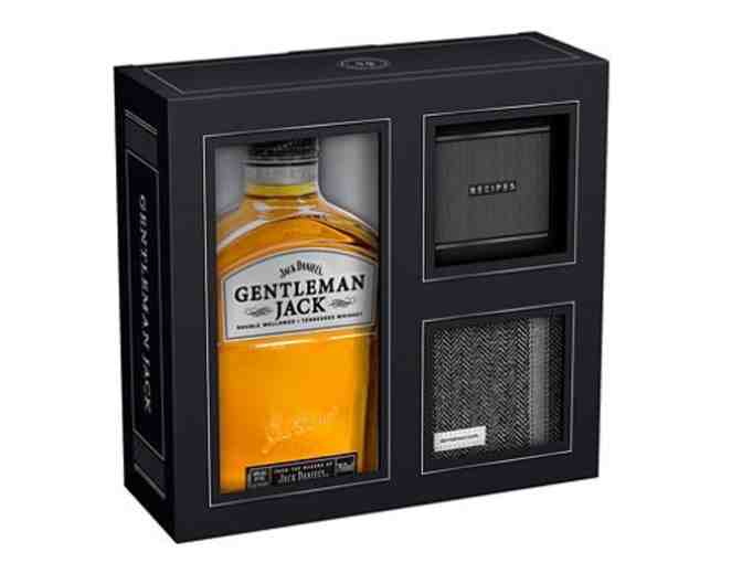 Gift Set includes: one 750ml bottle of Gentleman Jack Tennessee Whiskey, recipe booklet, and four cloth coasters.