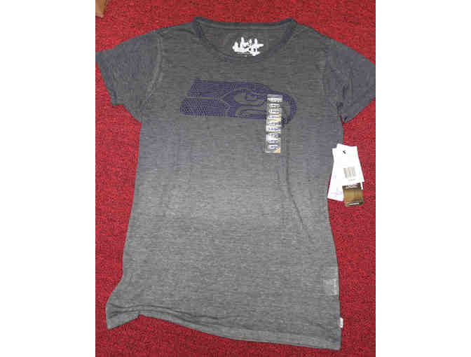 NFL Apparel T-Shirt in ombre gray with short sleeves. Pebbled Seahawks logo on chest