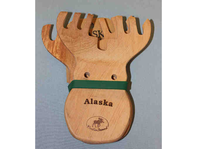 With plenty of antler ability, these wood moose salad claws are a great way to bring a bit of the outdoors in for dinner. Approximately 7" long and 5½" wide.