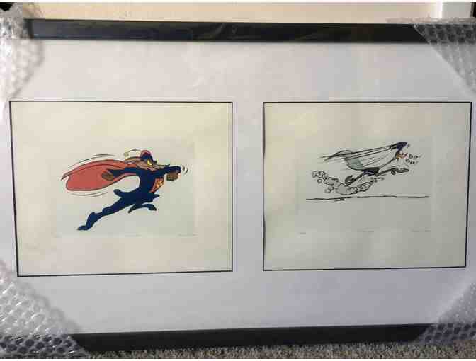 Limited edition framed double image print of Roadrunner and Wile E. Coyote Created by Chuck Jones.