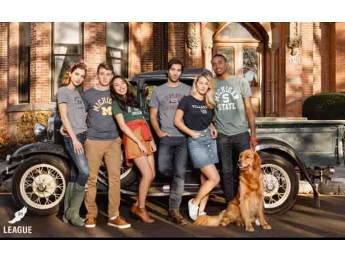 Three Men’s and Three Women’s custom decorated apparel products from League Collegiate Outfitters.