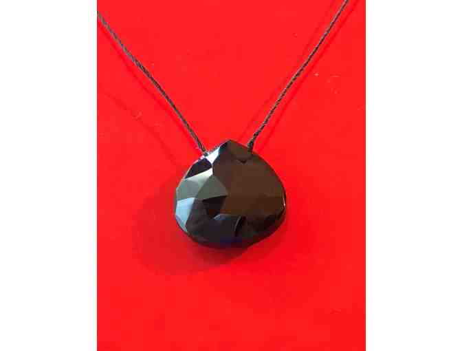 Spinel- Faceted Teardrop Necklace Nice weight, 1/2" bead on a 16" waxed cotton string with sterling silver clasp