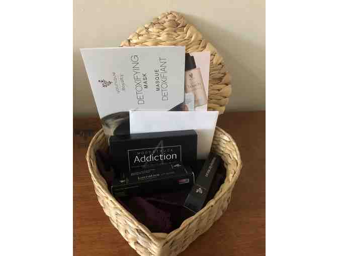 Donated by alumna, Noelle Aguilar '13, you will find all you need for a fresh, new look! This set comes in a woven, heart-shaped gift basket with a lid that closes.