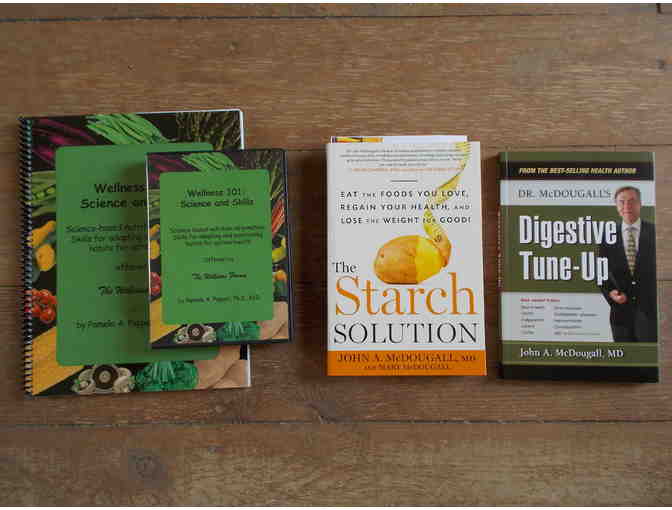 Two books by John A. McDougal, M.D (Digestive Tune-Up, The Starch Solution) that will show you how a plant based diet can prevent and cure a variety of digestive and general health problems. ALSO a book and an accompaning DVD (Wellness 101:Science and Skills) by Pamela Popper, Ph.D, N.D. that provide sicence based nutrition information and skills for adopting and maintaining habits for optimal health