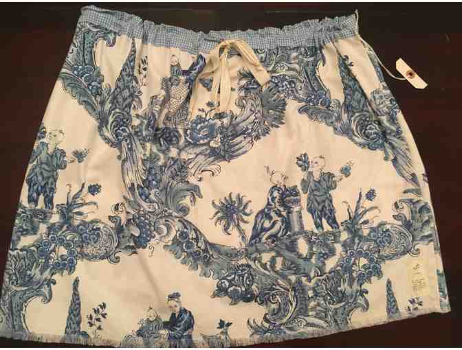 You are bidding on a vintage toile blue and white skirt from Uptown Needle & Craftworks. Size large.