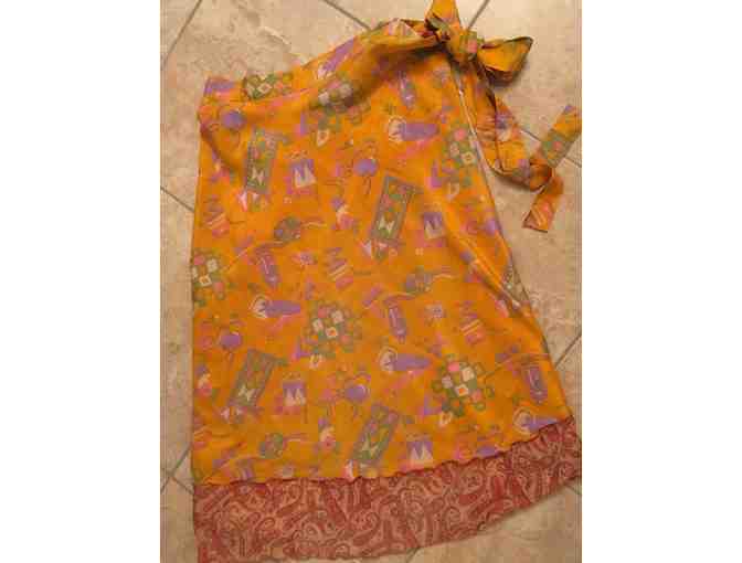 You are bidding on a vintage multicolored sari silk wrap skirt from Uptown Needle & Craftworks. Size large.