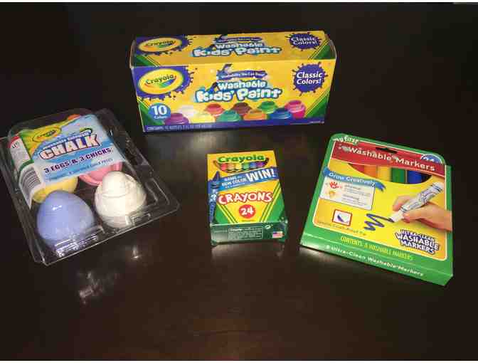 Bundle 5 includes: kids washable paint set of 10, sidewalk chalk set of 3 eggs and 3 chicks, 8 washable markers, set of 24 crayons with new color named "Bluetiful"
