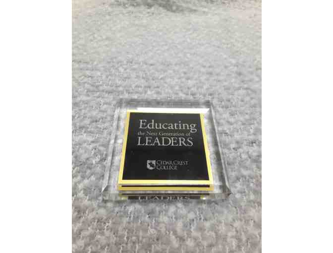 Add a compliment to your desk with this "Educating Leaders" tile with the Cedar Crest College logo.