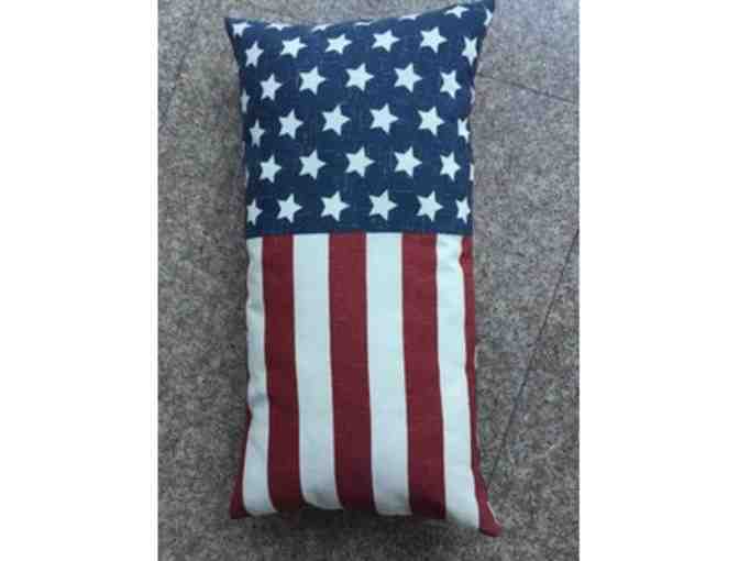 This oversized USA flag Lumbar Pillow will brighten up any couch indoor or outdoor.