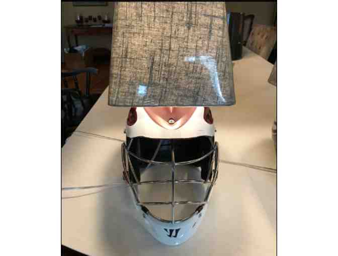 No better way to light up your player's room than with this custom accent lamp made from a genuine retired Summit Hilltopper Lax Helmet!