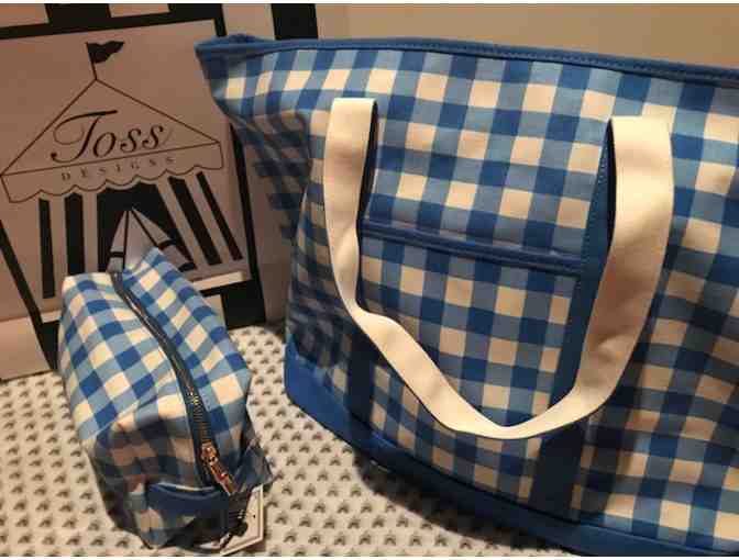 Toss Designs- Blue Check Tote zipper bag & Cosmetic bag