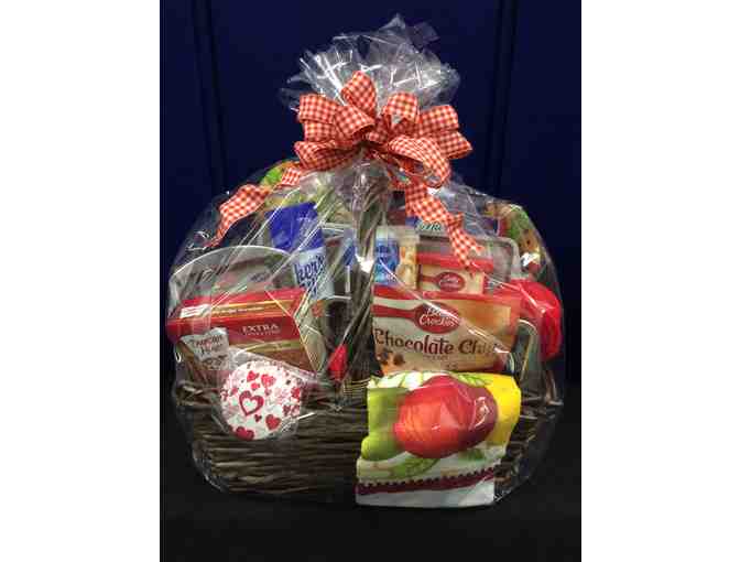 This Baking Basket is filled with everything you need to satisy the sweetest tooth! Baking Pans, Cookie, Brownie and Muffin Mixes, Measuring Cups and Spoons, Oven Mitts, Kitchen Towel and Baking Spray are all included and will surely provide hours of baking fun!