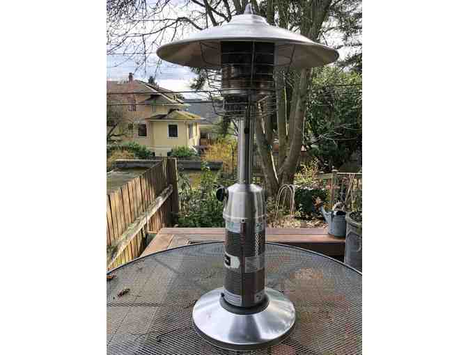 This seldom-used outdoor propane heater is meant to sit on your patio table to warm up your spring and fall barbecues. It is just over 3 feet high.