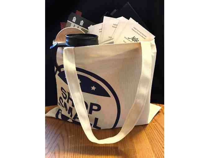 This gift set includes a "Shop Local" tote bag containing the following items: 1 Moravian Star ornament, 1 Valentine Haidt Painting Puzzle, 1 Cat's Meow Whitefield House, 1 Moravian candle, 1 Walking Tour book, 1 Nazareth PA Coffee mug, 4 Books on Moravian History, 4 Museum Admission OR Walking Tour Passes.