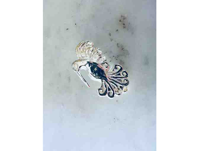 You are bidding on a silver plate 2" hummingbird pin by India Stewart. As shown in photo, it has a loop on the back so it may also be worn as a pendant. Beautiful! Presented in jewelry bag and box.