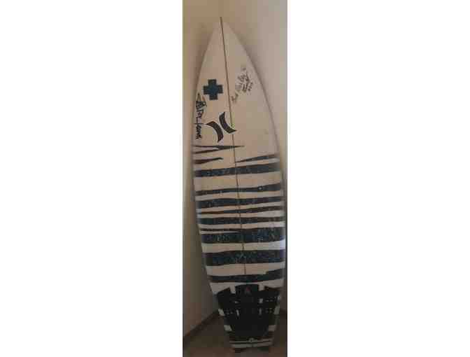 Ride in style with this rad board acutally surfed and signed by Bob Hurley. The board was made by shaper Surf Prescription Doc a great local surfer and shaper from Huntington Beach. It was design and surfed by Bob himself.