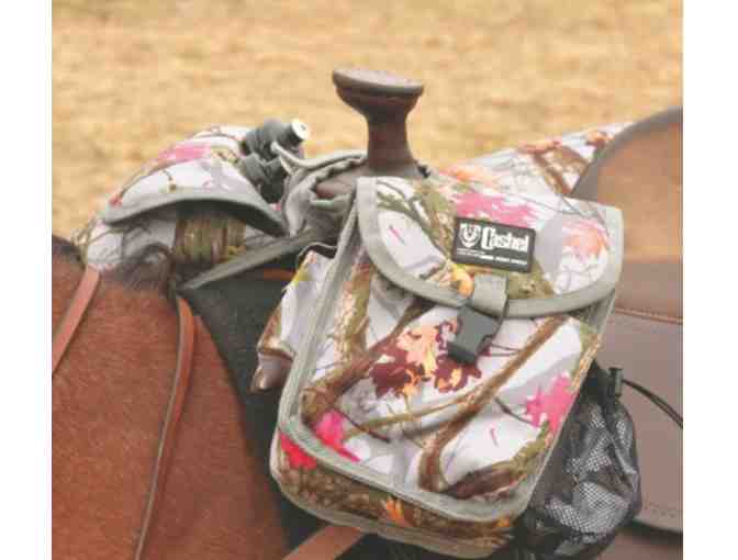 From the original Cashel. Heavy-duty, insulated saddle bag with 1 large side bag, double slip-sleeve side bag for water bottles (bottles not included) and cell phone holder (phone not included) on cantle. Made from durable, water resistant nylon with pocket after pocket of storage room. Removable insulated liner makes it easy to clean and simple to fill with ice, food and drinks. Zipper closures, satin finish hardware. Reinforced nylon at horn.